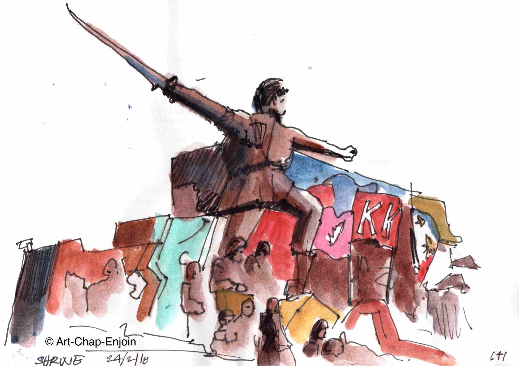 Here is another one from the sketchwalk I joined on Saturday. This is a memorial to Andres Bonifacio, I think depicting various events in his life. I was told the different flags show how the current Philippines flag evolved. The KKK on one flag refers to the Katipunan a Philippine revolutionary society founded by anti-Spanish Filipinos in 1892.