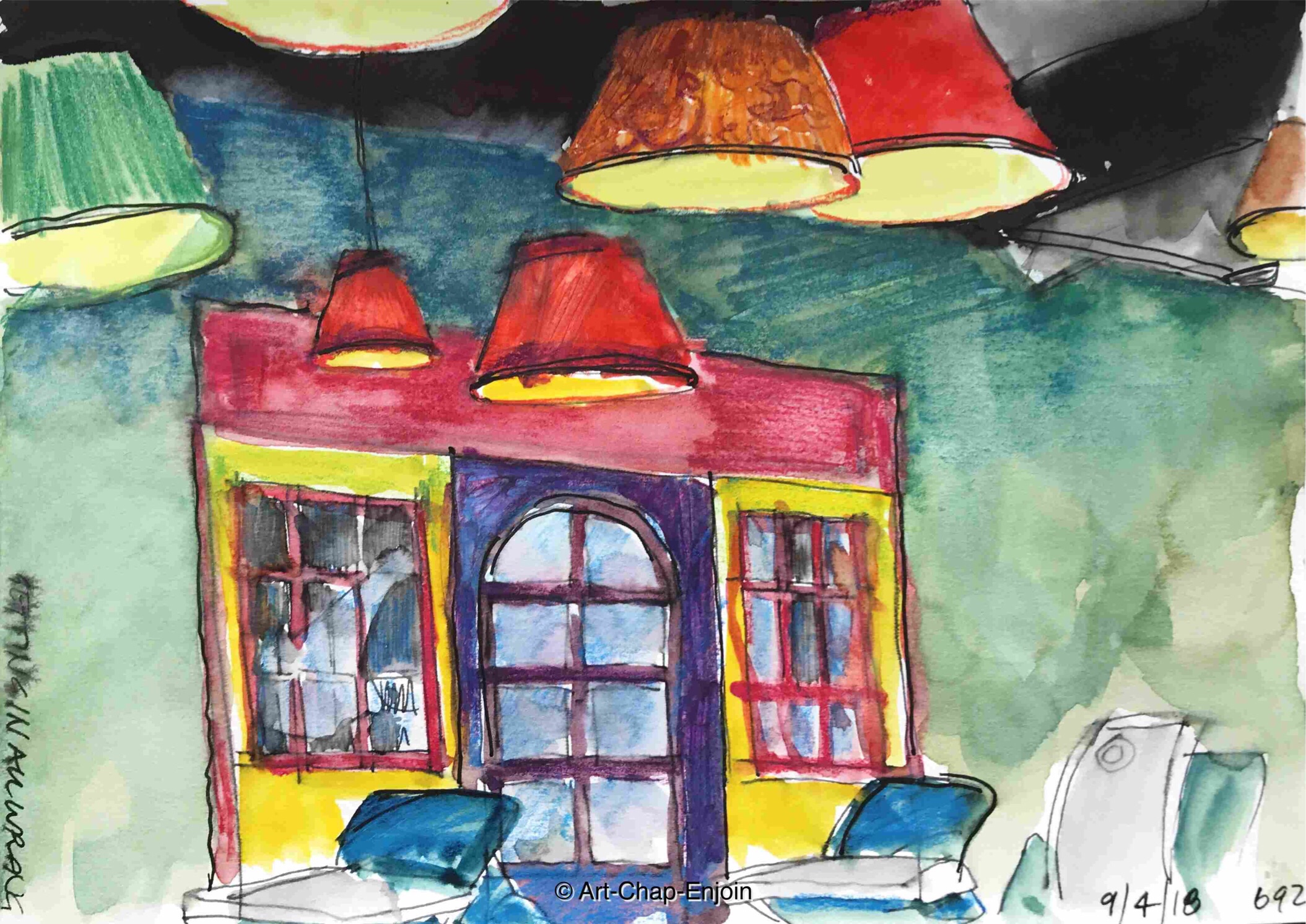 I haven’t posted in a while – work has taken over my time. But here is one done in Warak Enab restaurant near the Bristol Hotel in Amman. Somehow this seemed to turn out more muddy than real life.