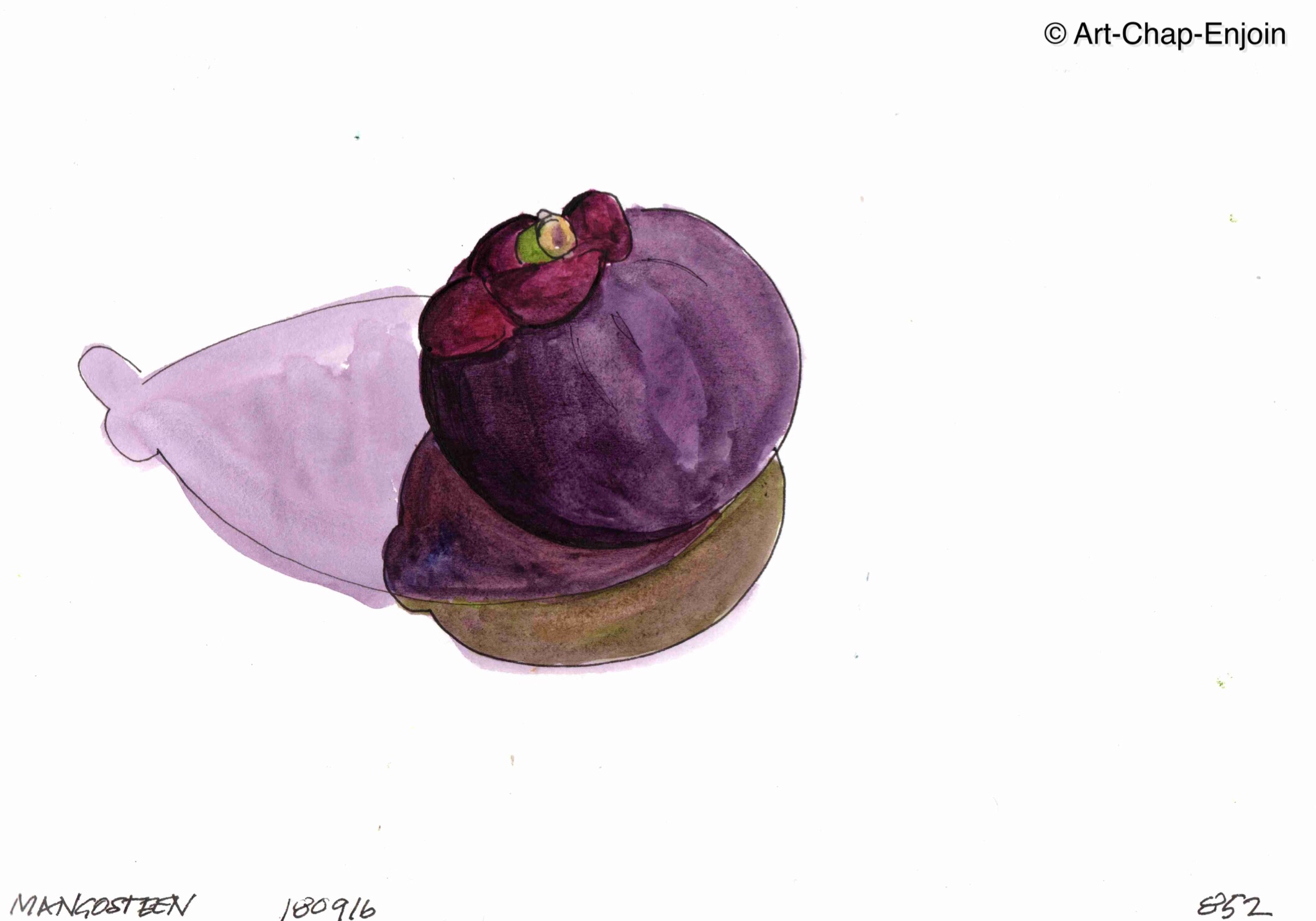 Here is today’s quick doodle – if you’ve never tried mangosteens they have white juicy segments (with big seeds) inside with a tangy flavour (some people say like a combination of strawberry and peach).