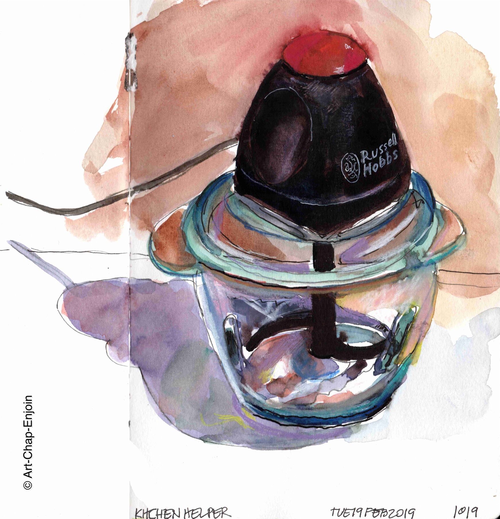 As you might guess from this sketch I got a lot of Christmas presents and I am still drawing them all to say thank you! This little food processor was from my mum and dad. When I was at their place I admired (and used) theirs and lo and behold I got one for Christmas.