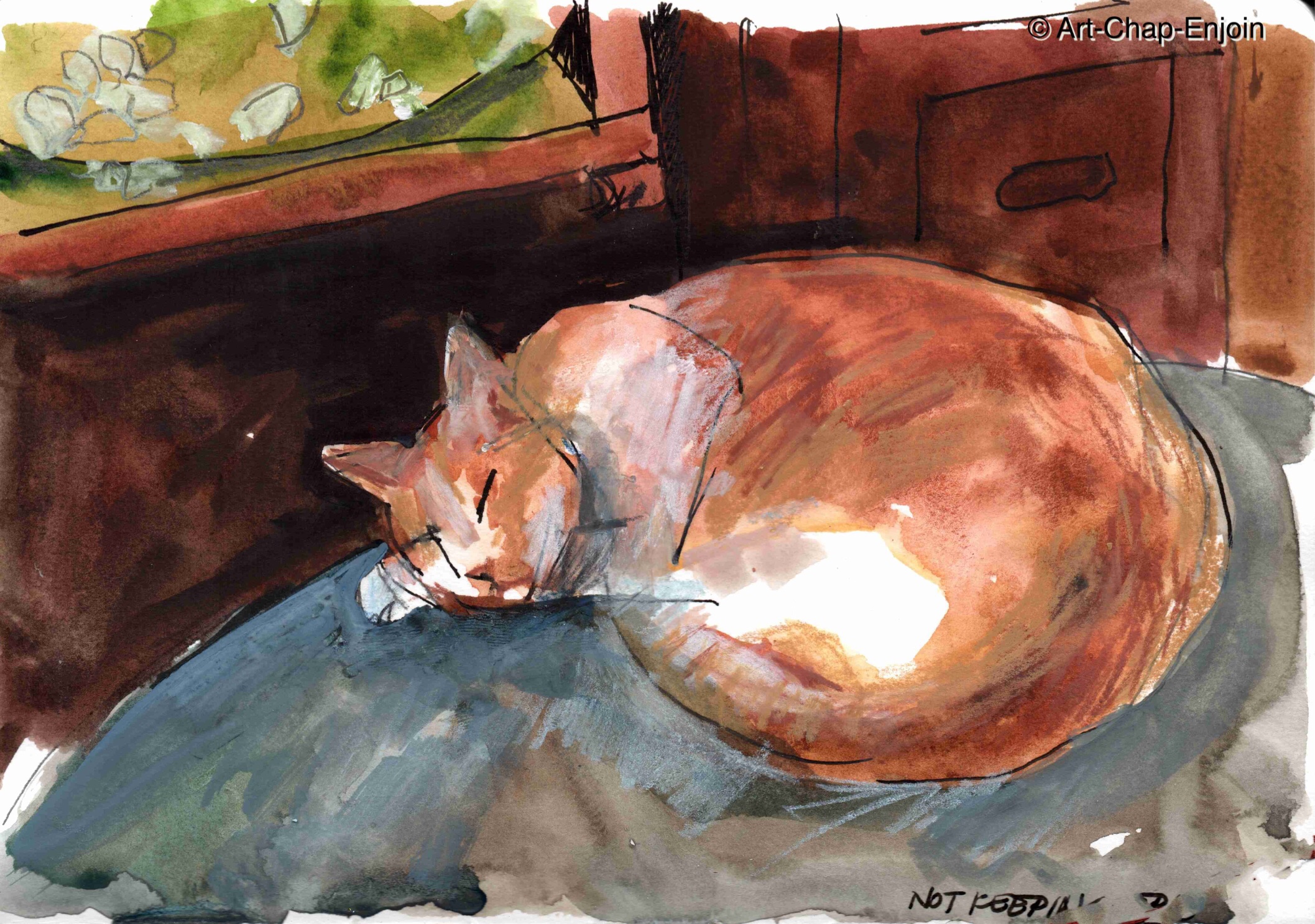 Here is a sketch I did of our cat one evening last week – you can tell from the title that I had some difficulty with it. She moved around a lot and somehow her head ended up tiny!