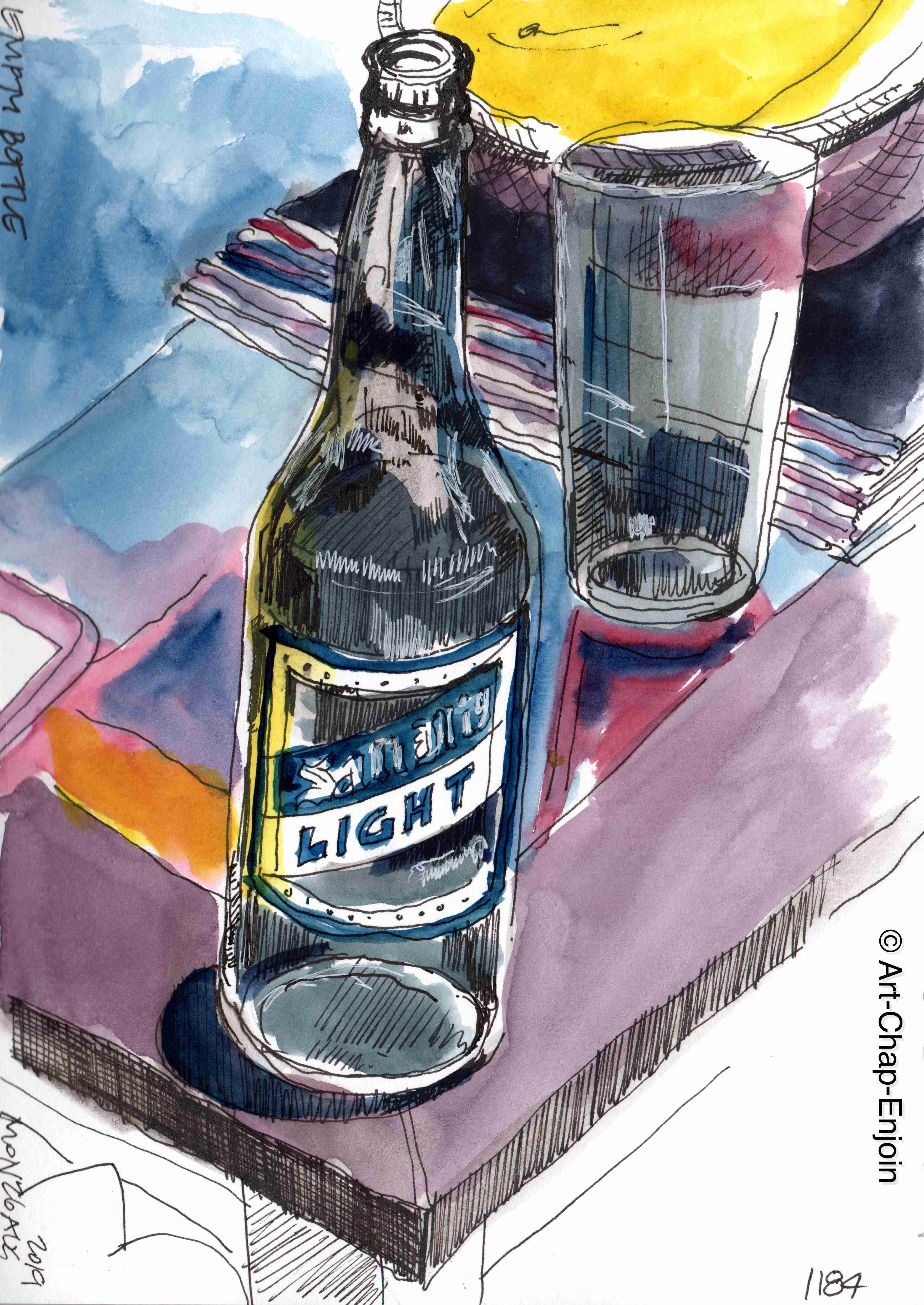 Here is an evening doodle of one of my favourite subjects. Of course I had just drank the beer! Apparently San Mig Light or SML is the country’s leading low calorie beer. The company was founded in 1890 by a group of Spaniards in the Philippines and they expanded to Spain in 1953 – not the other way round.