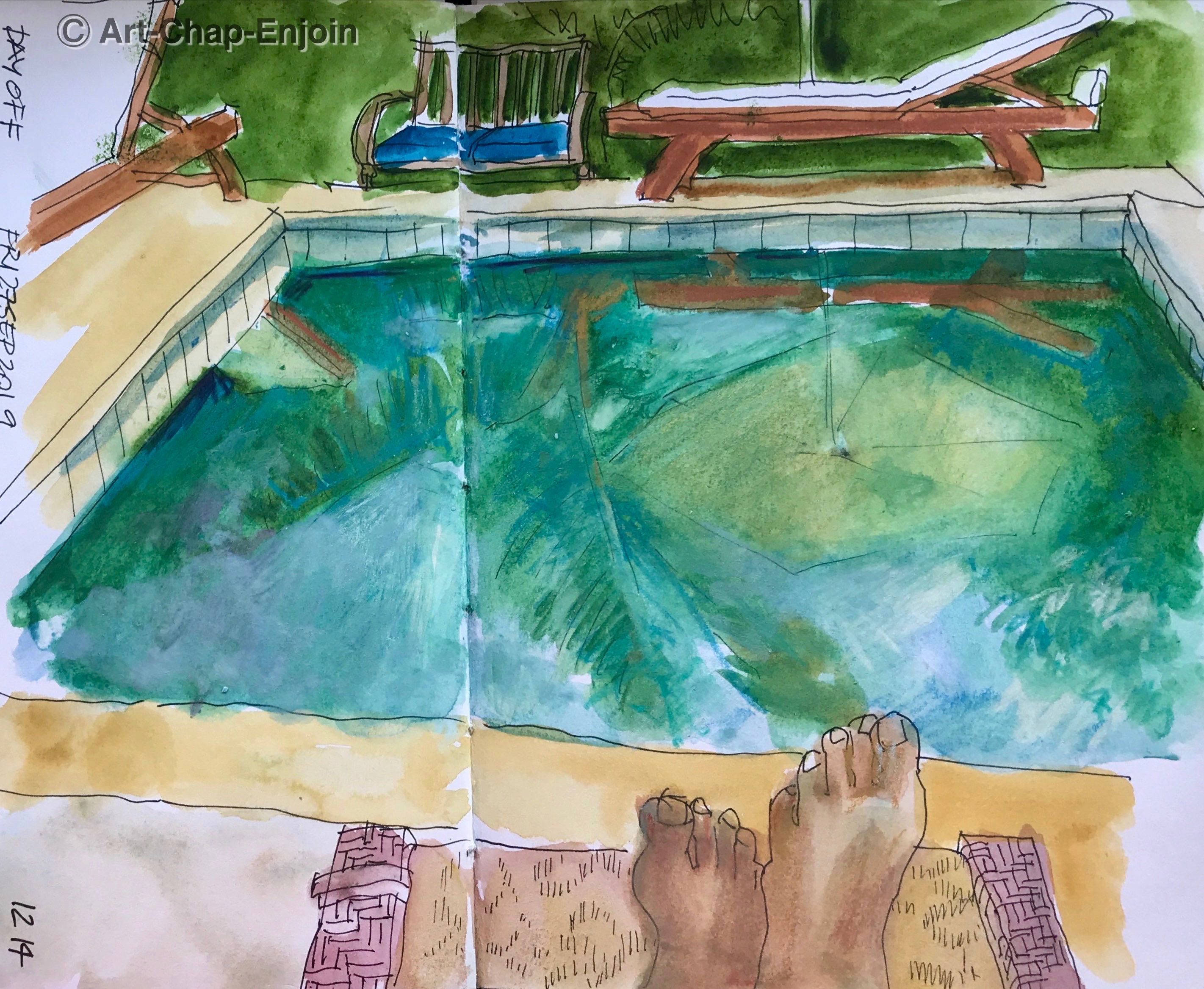 I was having a lazy day off on Friday – because its national youth day (a day to celebrate and honour the youth of TCI). I celebrated by having a swim, sketching and lazing by the pool, reading a book and with a beer of course.