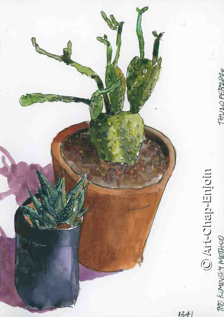 The other evening I sketched my daughters cactus and succulent while watching the Kominsky Method on Netflix. Who would have thought that a gentle comedy about two old guys, death and prostate problems would make me “laugh like a drain”. If you haven’t heard of that phrase, it’s from the UK around the time of WWII described as army officers slang…something I must have picked up from my dad, as I am not quite that old.