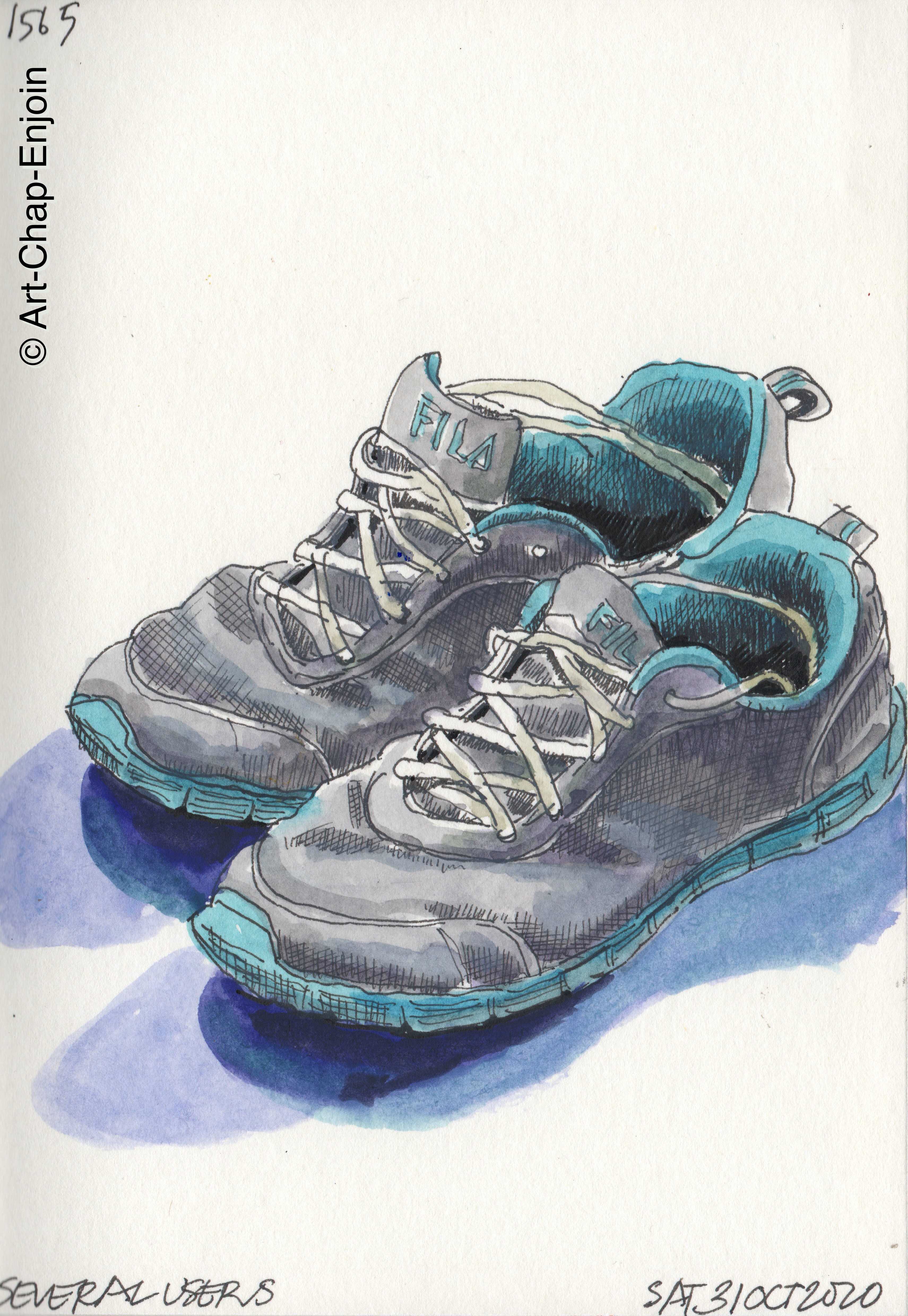 Following the next #Inktober2020 prompt of shoes, I picked these because they are rather tired looking, plus I get to use some Phthalo blue.