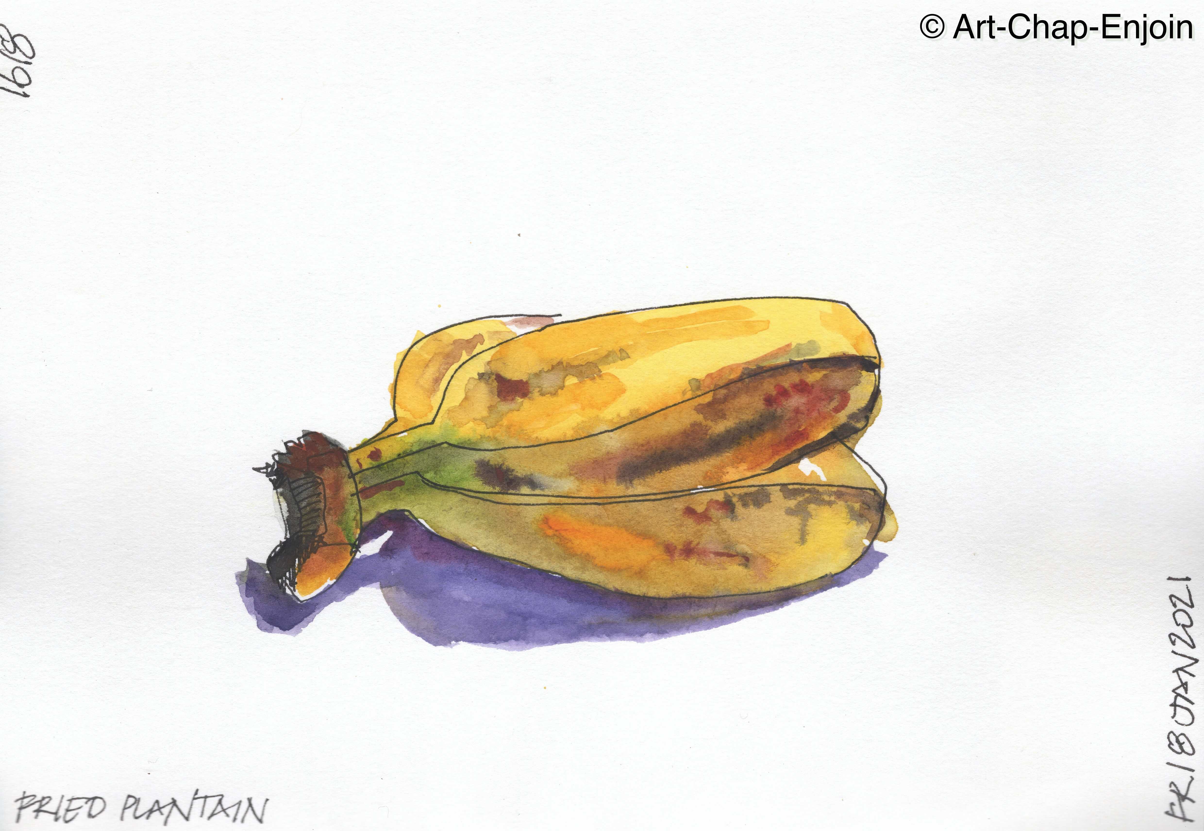 Last week we had fried plantain as part of our dinner, so I decided to sketch what was left of the (un-fried) ones afterwards. For anyone who hasn’t tried plantains they are big starchy cooking bananas that can be cooked ripe or unripe. Yummy!