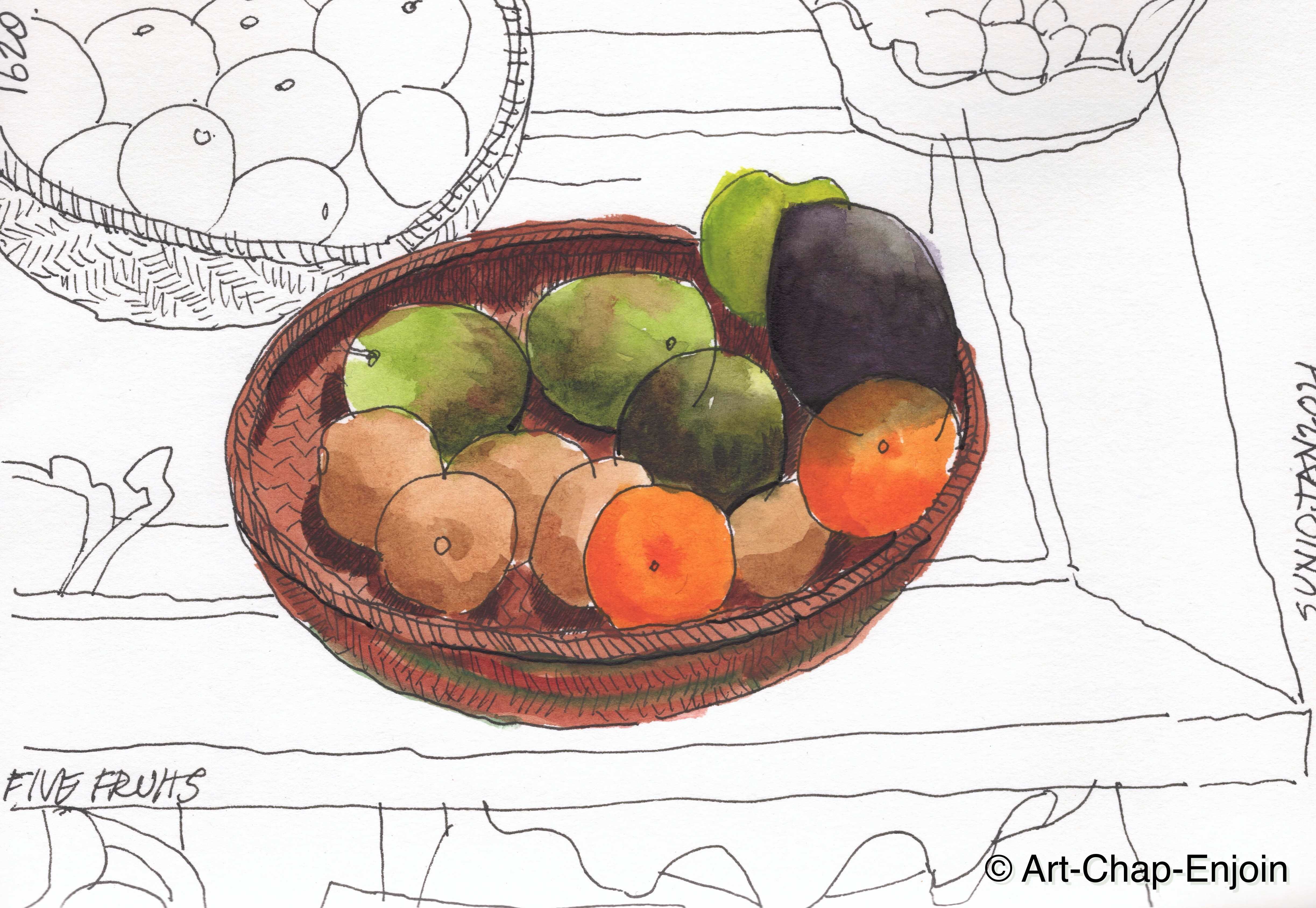 Here is another sketch from last weekend – done after coming back from the wet market (the fruit and veg market) – when my wife went a bit mad in the fruit section. We bought chicos (sapodilla), oranges, milk fruit (star apple), avocado and there is green apple there too. I think that day we also bought banana’s, plantain and strawberries!