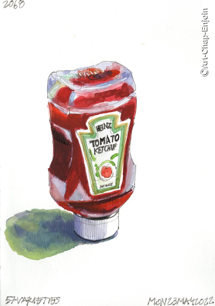 Here is a simple evening sketch of a bottle of tomato ketchup – one of those handy squeeze bottles. The “57 varieties” slogan was first used by Heinz in 1896 – even though at that time they already sold more than 60 different products and of course now sell hundreds.