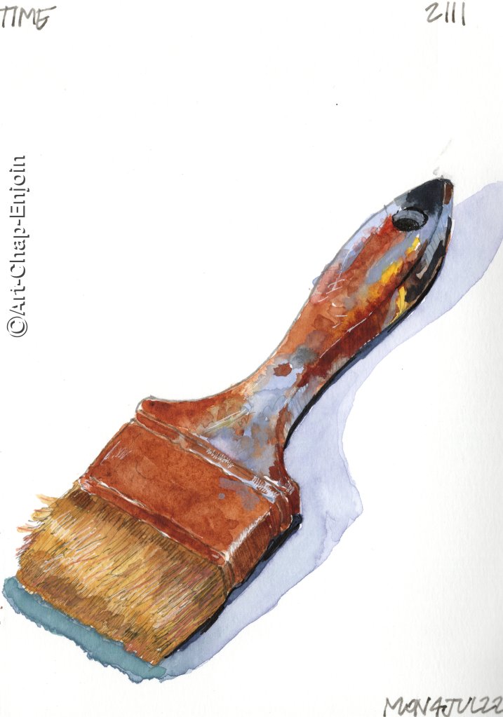Here is my next sketch for #WorldWaterColorMonth following the subject of ‘time’. When we had some railings installed last week, the workers left behind this old paintbrush and didn’t want it back. It looks like it’s had a long and useful life.