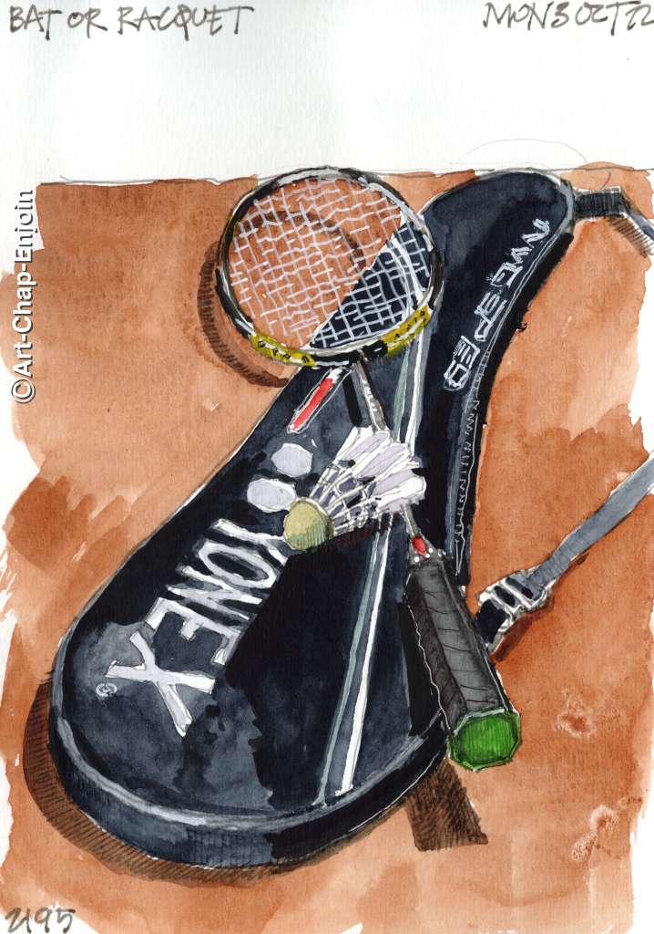 I found one of our old badminton racquets, when tidying up the other day and thought it would make a challenging sketch for the next #Inktober2022 subject of #Bat. I know it’s called a racquet for badminton…but this is the closest I can get to a bat. They do fly past our balcony some evenings though…our cat goes mad when he hears them.