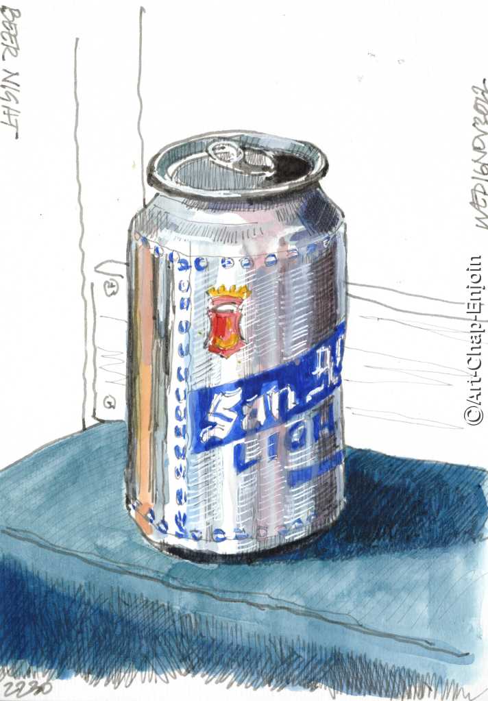 I am pretty sure I have drawn a beer can many other times – but I don’t care. I am not sure if the “light” part of San Mig Light is really helping me not to gain weight – but again, I don’t care. Some nights a beer is what is needed.