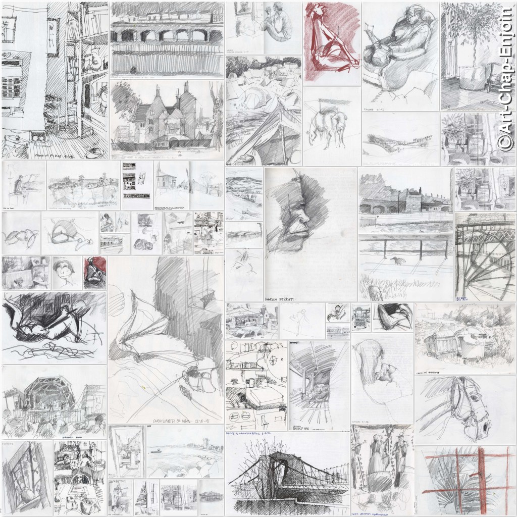 Here is the second video and collage I put together from the scans I made from the first of my old sketchbooks. These sketches were done in the UK and are mostly black and white, done in ink or charcoal.