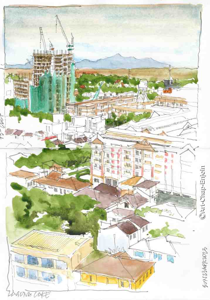 I am jumping forward with my posts again. This one I did today (while chatting to my friend @TheArtofBeingPresent) from our new (temporary) apartment, where we have moved while some renovation is done to our unit. Most of the housing you can see in this has been developed by DMCI (the developers who built the place where we live)…I presume also the big green swathed building under construction. The brown smudge in the background is Laguna lake…I never knew it was so close to us.