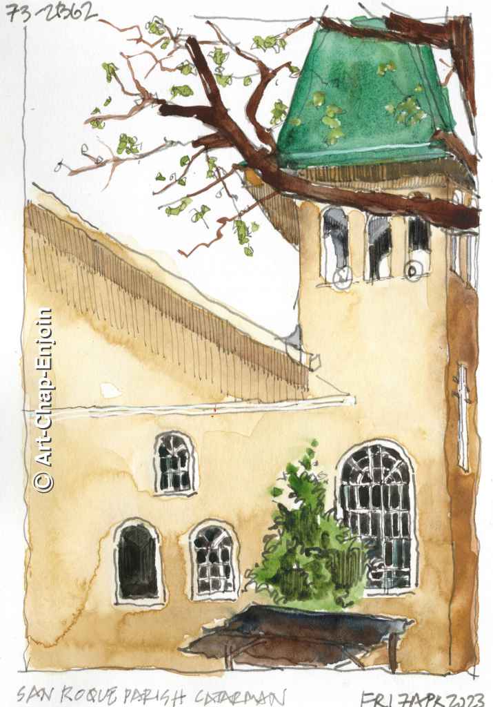 I am going back to some unfinished sketches that have been languishing in my sketchbook. On good Friday (7th April) when we were in Camiguin we went round and did a ‘Visita Iglesia’ (Spanish for church visit) a practice in the Philippines of visiting and praying in at least seven churches during Holy Week. We didn’t make it to that many – but managed three. This was the second one we went to.