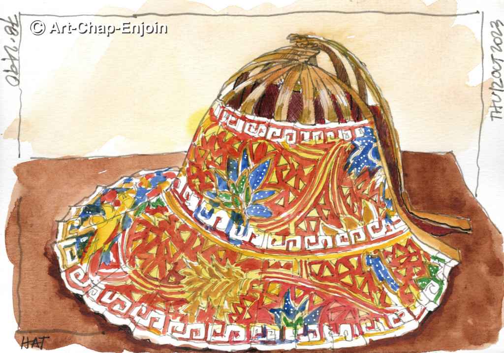 With this post I am going way back to the #Sketchtober2023 prompts (for Day 10). This hat is a fantastically inventive piece of local craftwork (I’d love to say it’s a Filipino invention, but a Google search refers them as both Chinese and Japanese). It is made from a shaped set of bamboo ribs, covered in a piece of fabric, which fan open from a pin at the top, to form the hat (it is held open with a little bit of velcro) and then fold back together like a handheld fan. Of course you can also use it to fan yourself!
