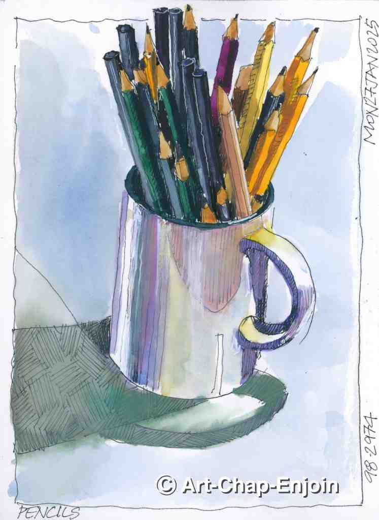 I was a bit stuck for a subject to sketch, the day I drew this, so I looked on Instagram to see what some of my favourite sketchers were up to. Seeing that @everydaylizmc had sketched some pencils, I thought I would give that a go too (also because that day I had sorted out all my sketching materials). If I am stuck for something to sketch I find that just looking at what some of your favourite artists have done, is a good way to get an idea.