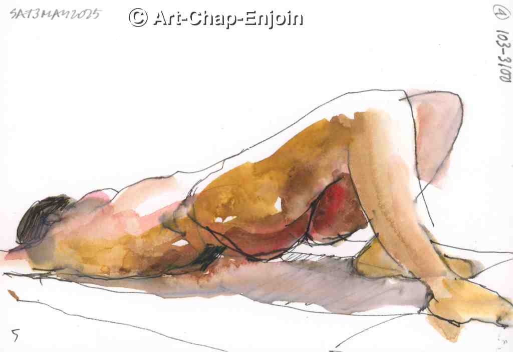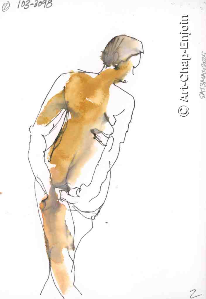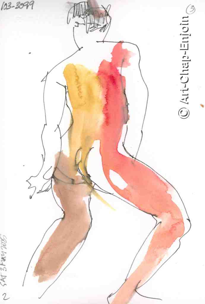 Here are some of the sketches I did at the #PensNBrushes life drawing session on 3 May. As usual we started with quick poses of 2 minutes and then had a few of 5 and 10 minutes each. These are the ones of the female model. Unfortunately I didn’t bring my watercolour pencils to this session, so instead I used my ancient #Rotring ArtPen with water soluble ink, then added some watercolour washes. As is often the case I was most satisfied with the sketches that I took the least time on!