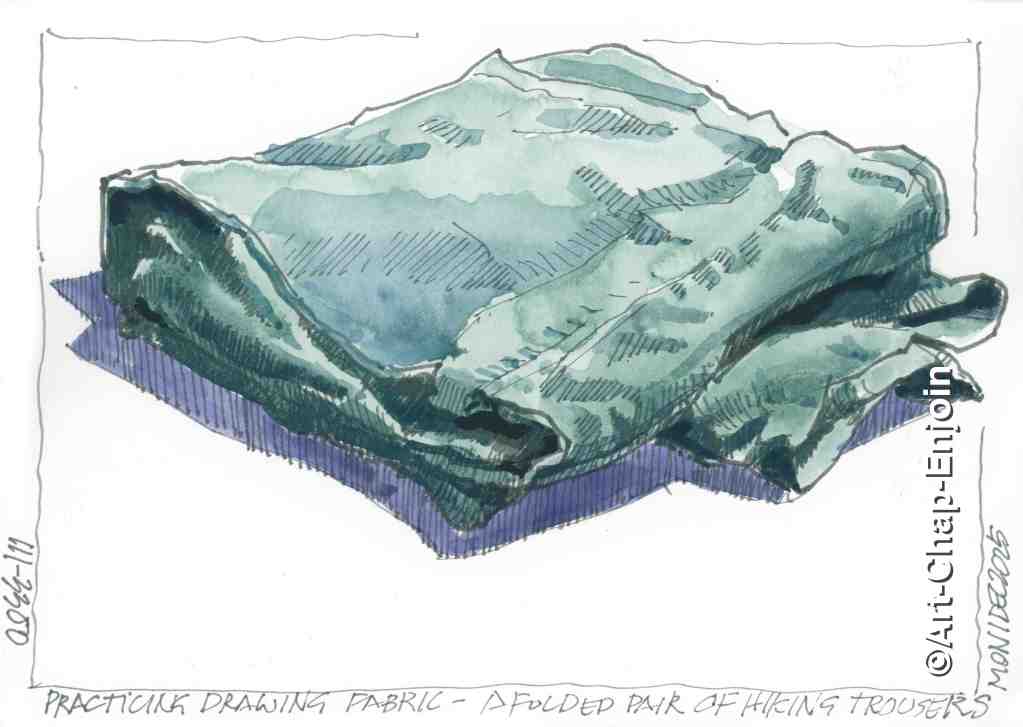 For me sketching is about practicing, and drawing even the simplest thing helps. I think I need to improve sketching folds and shadows in fabric so why not this (folded pair of hiking trousers)?