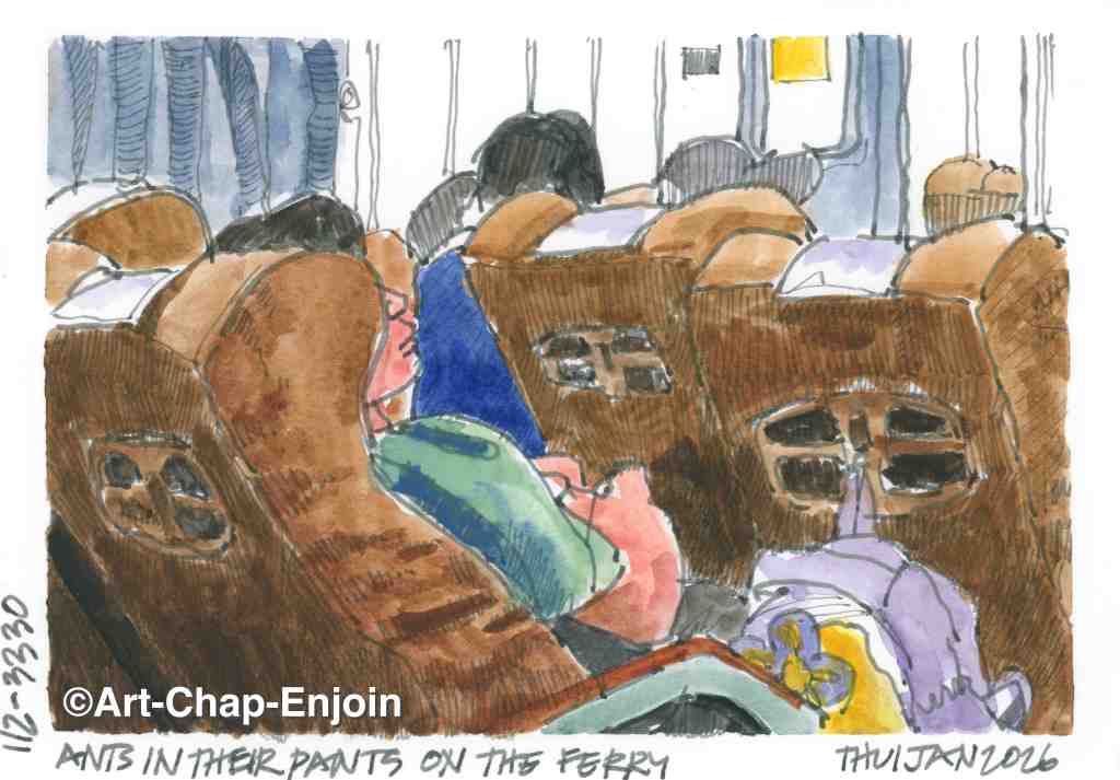 On the ferry to the Camotes Islands I sketched people that have “ants in their pants”. They didn’t stay in one place and in the end the figure on the left was made up from two different people!