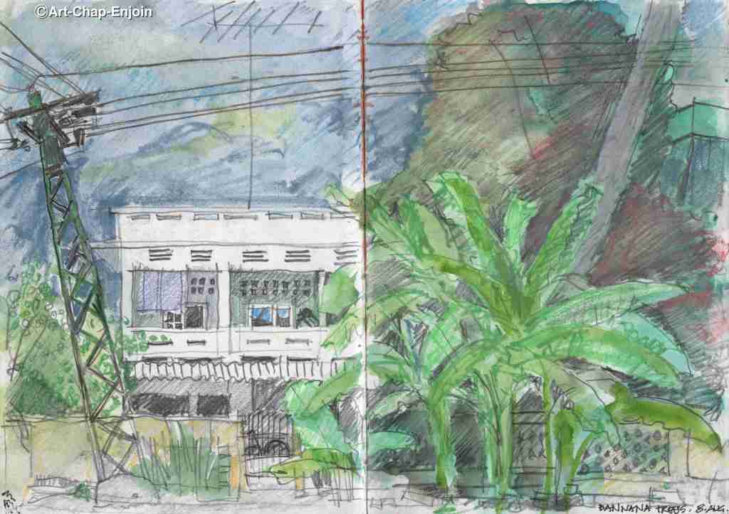 Here is another sketch from my Cambodia archive. This one was done in pencil and pastel – my favourite media at the time. Obvously I did a lot of sketching in temples when I lived there – I always found them to be lovely peaceful and quiet places.