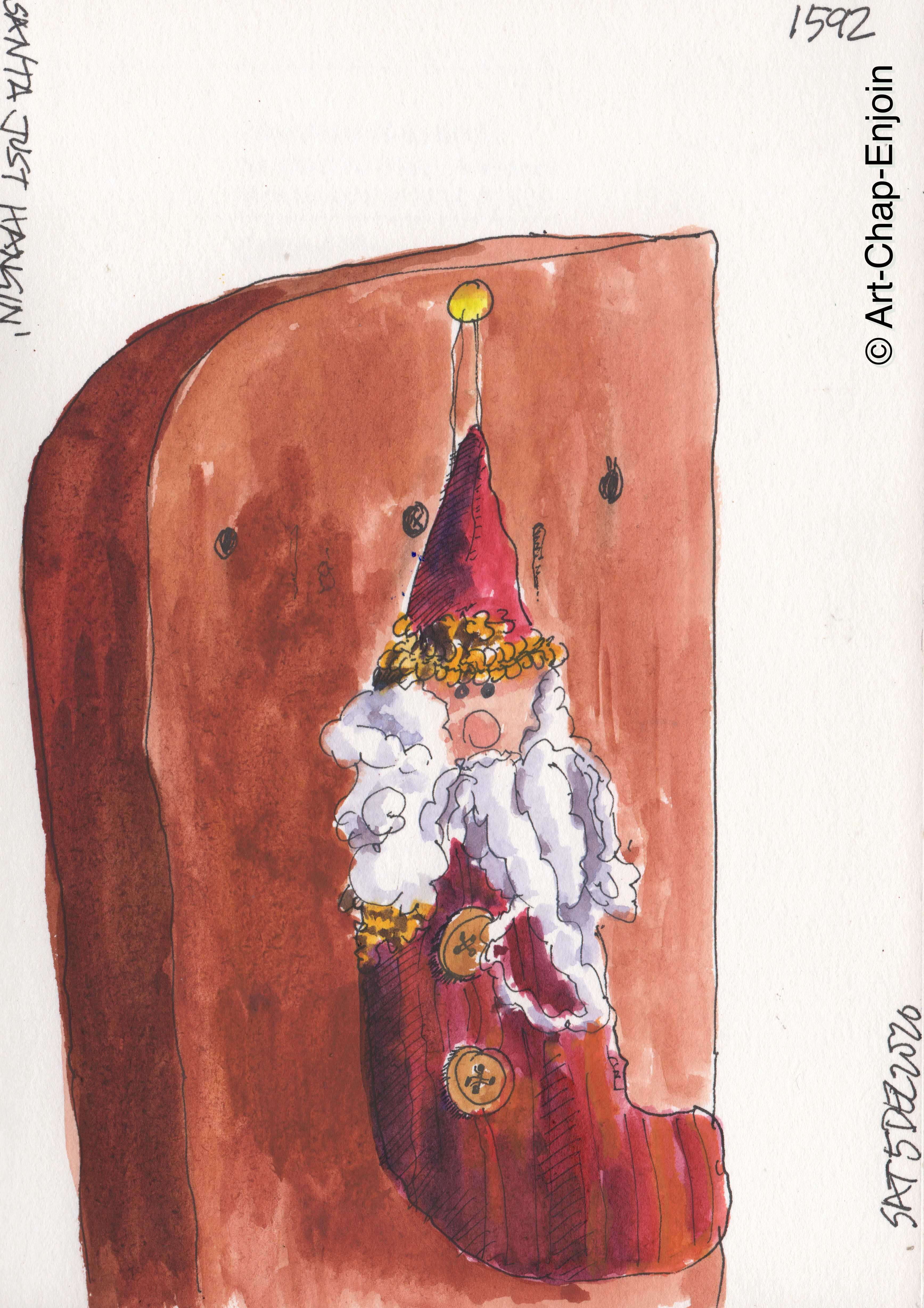 Here is another sketch of one of our Christmas decorations..don’t know where this came from and it’s become rather tired over the years. He usually hangs on the tree but as it’s so small this year we have hung bits and pieces around the house.