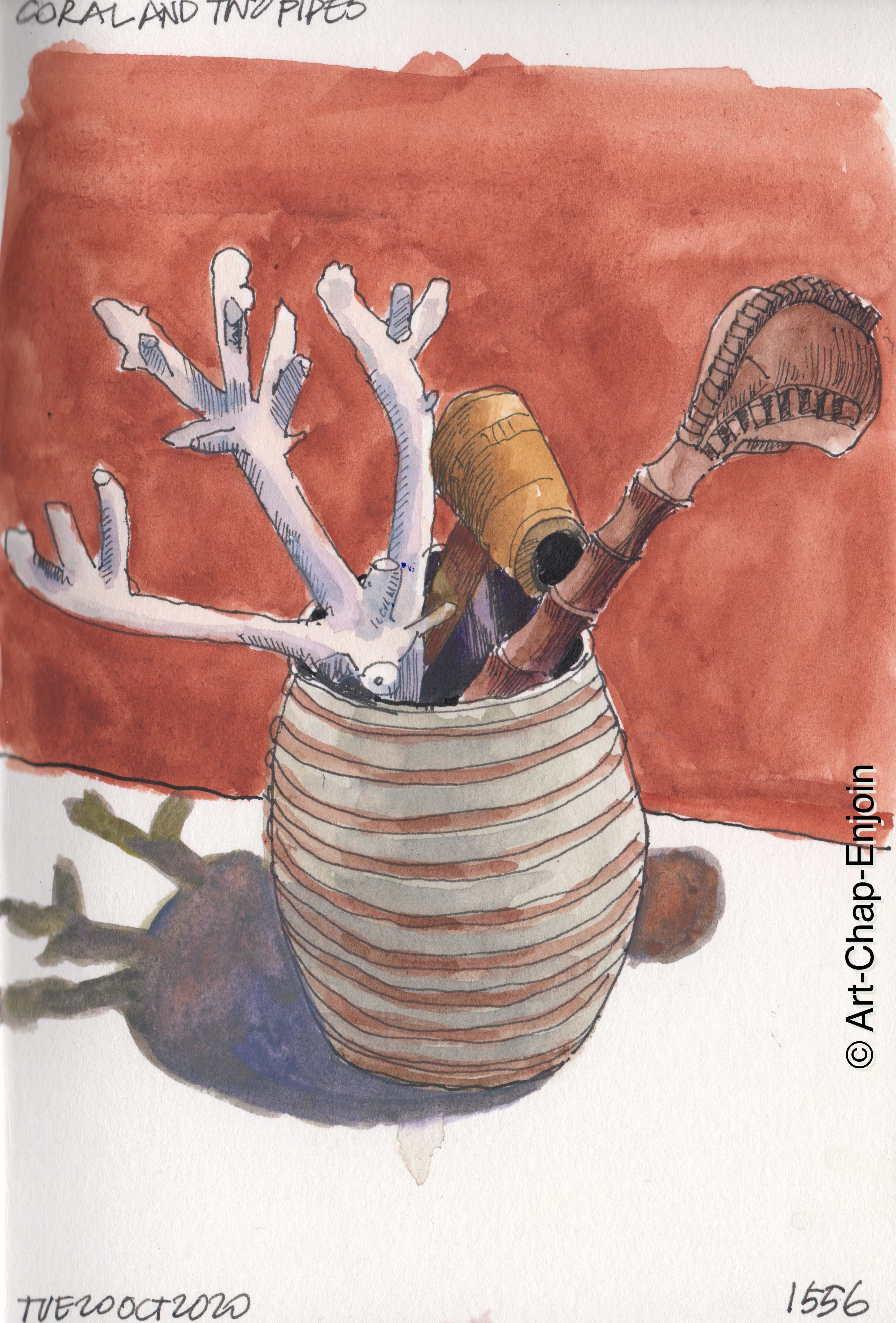 Yesterday’s #Inktober2020 prompt was “coral”. That made it easy for me to think of what to draw because we’ve had this piece of coral around the house for many years. I regret collecting it off the beach now – I realise now we shouldn’t have done that. I think when big bits of coral wash up like this, its a sign that there has been some damage, sometimes due to people sometimes due to major storms. In any case it’s better to leave it on the beach so it breaks down into that lovely white coral sand so many beaches in the Philippines are famous for.