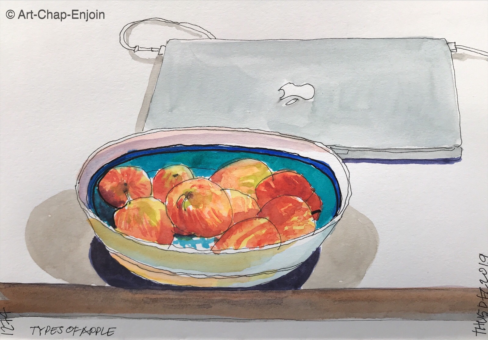 I realised that I haven’t drawn any fruit on this trip…so here you go. Two types of apple, haha! Just a quick sketch in the evening.
