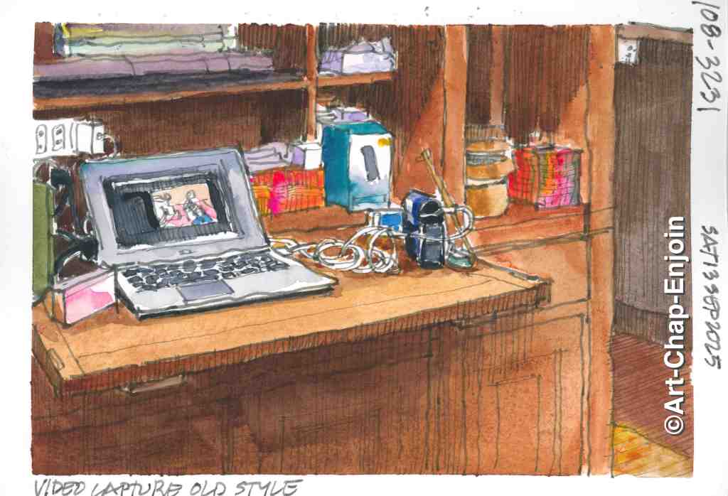 After the sketchwalk we gathered at Quatro Arts (a nice little art supplies shop with good affordable materials) for our pot-luck lunch. The second sketch (of me) was done by my daughter.