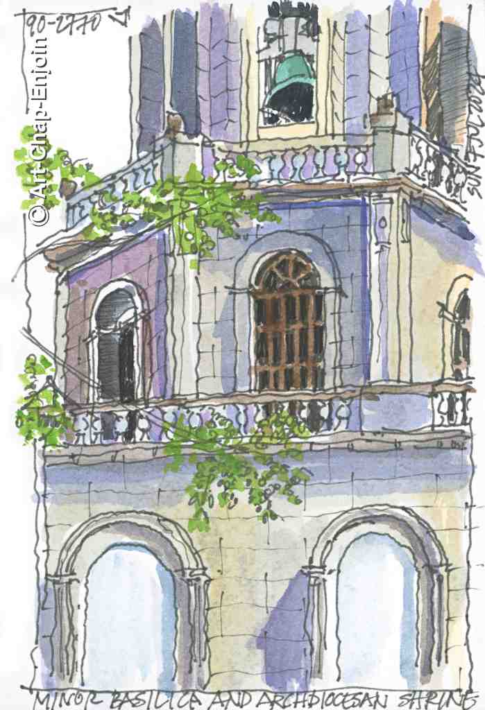 This sketch was started in “Edmundo Lounge” in Bury St. Edmunds where we had lunch on the third full day of our holiday. We drove to Bury to do some shopping for camping gear, in anticipation of the next leg of our trip, when we will camp at the Womad (World of Music Arts and Dance) festival in Wiltshire. I finished off the sketch at home.