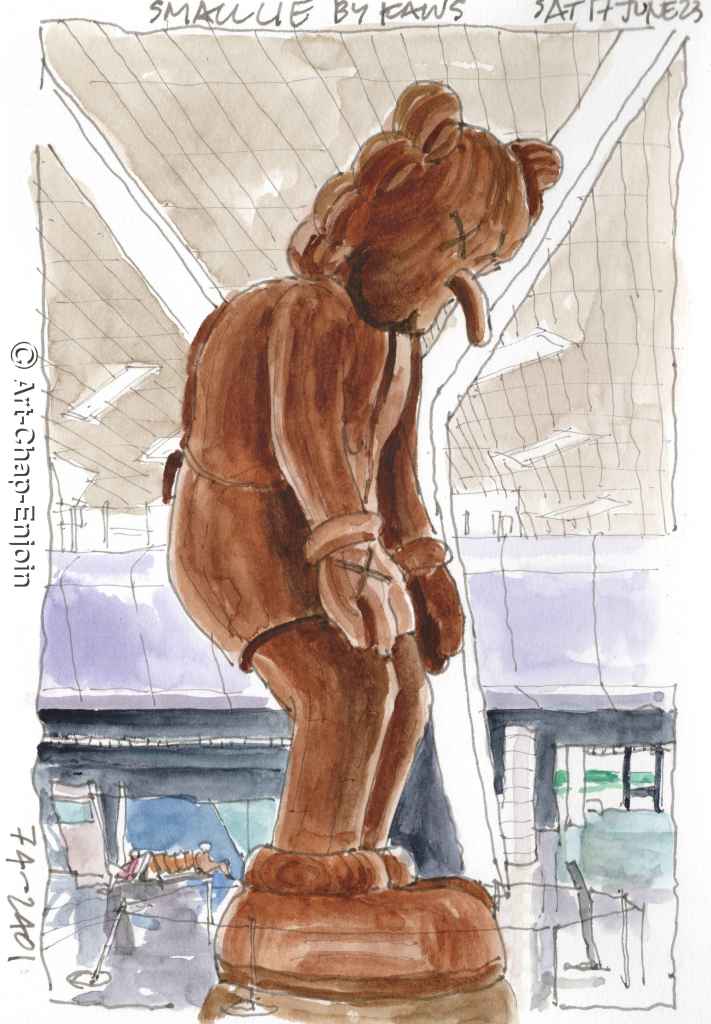 On my way back from Türkiye I had a very long layover (9 hours) in Doha. I started with this sketch (a huge wooden sculpture)…then slept in one of their ‘quiet rooms’. According to the blurb on a little sign this sculpture draws inspiration from pop culture and animations and is an exploration of humanity) Apparently it used to be installed at the Yorkshire Sculpture Park UK, Frieze Sculpture Park and Regent’s Park London, before it ended up here.