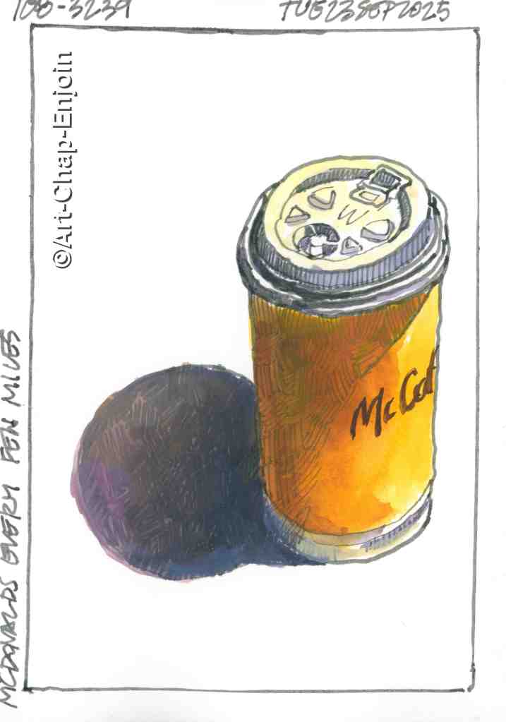 The #Usk prompt (which I sometimes follow when I am stuck for something to sketch), for this day, was “empty”. Plus I have seen some fellow sketchers repeatedly drawing/painting a coffee mug, so I thought an empty mug would do fine for a quick sketch.