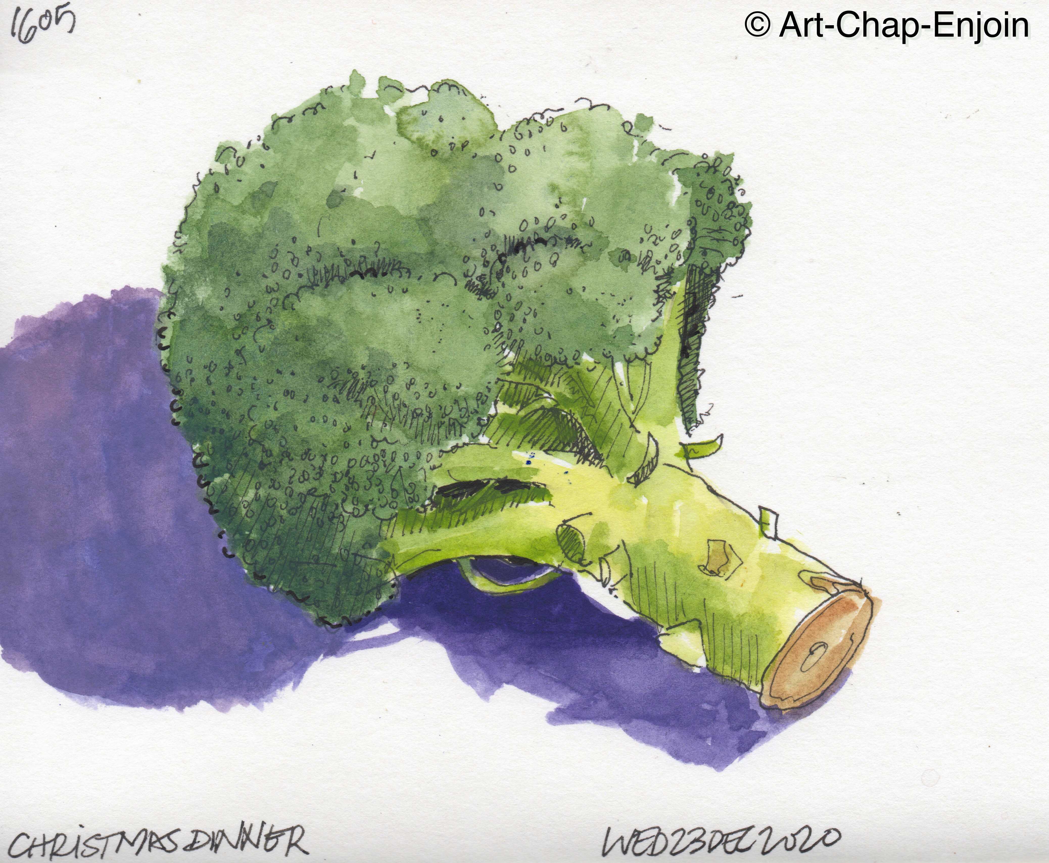 I’ve sketched a papaya many times – though never the inside I suppose – but with a big “red lady” (that’s the type of papaya) like this one, I do like the patterns that form as it ripens. Very soon after this sketch it was all yellow outside and a delicious pinky-red inside.