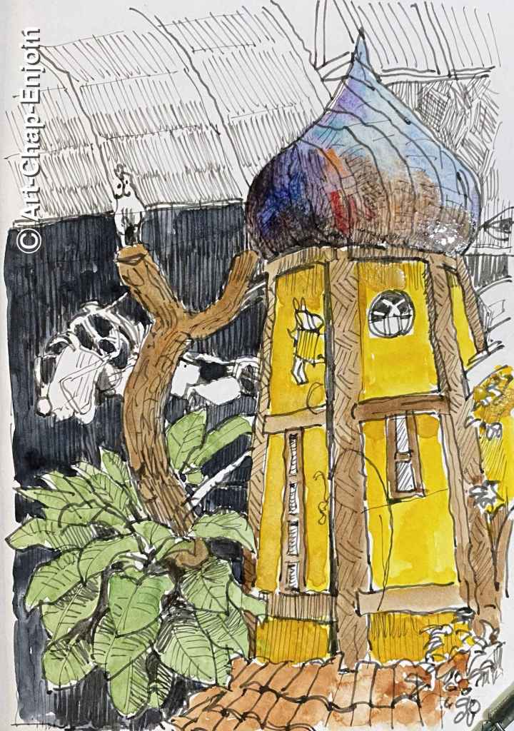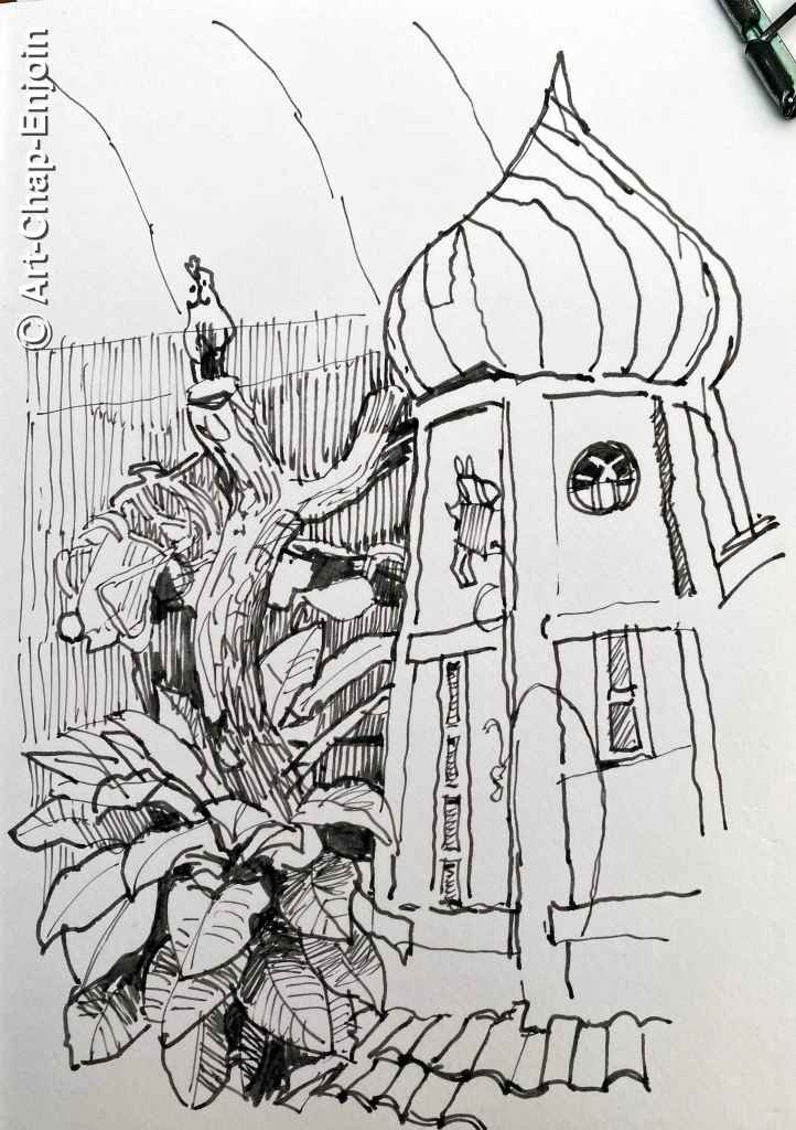 This is the first sketch I did after the initial talk of Enrique Flores at the ICM workshop on Saturday. Enrique gave us 40 tips on sketching, one of which was about including people to give a sense of scale – so I deliberately included the crowds outside the Cathedral. For a change I also masked off the edges of this sketch before painting (instead of using a wobbly line)…got to get some washi tape though.