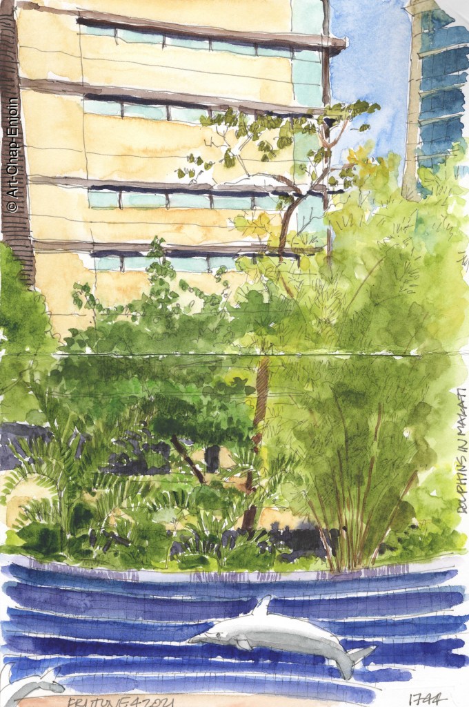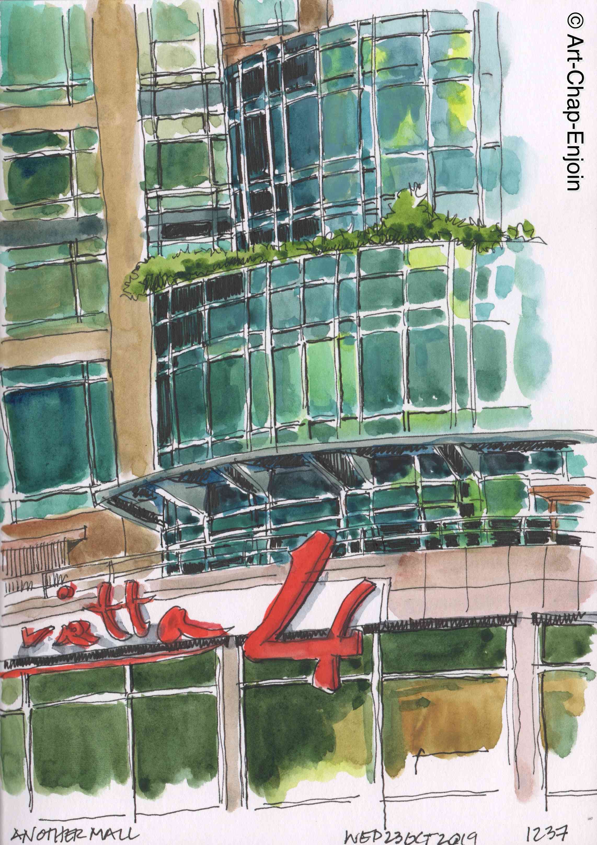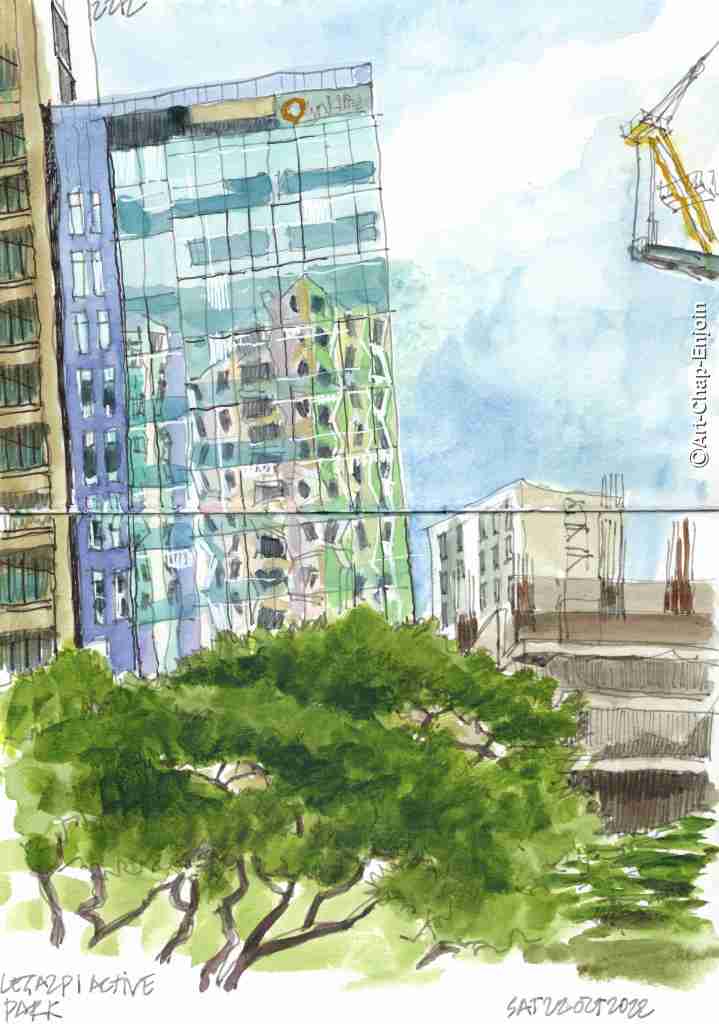 Here is the last sketch I did on Saturday with #UskManila. Having sketched some urban scenes, after lunch I was in the mood for some trees to headed to the park at the end of Legazpi street. I did include trees but couldn’t resist sketching this reflection in the Sun Life building.