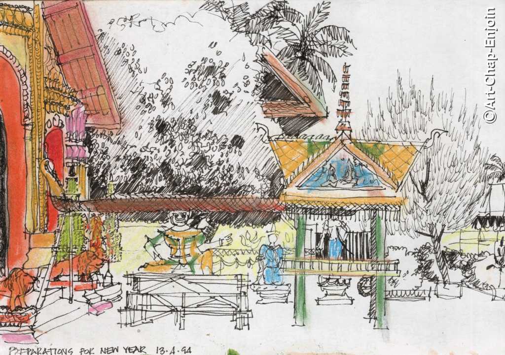 Here is another sketch from my archive of Cambodia #UbrbanSketches. I drank a fair bit of Sra Beer Angkor – a locally made beer – when I lived there. Although I learnt to speak Khmer fairly well, I couldn’t read or write very well – though I did learn how to write Sra Beer Angkor – that’s what is written on the red sign in this sketch.