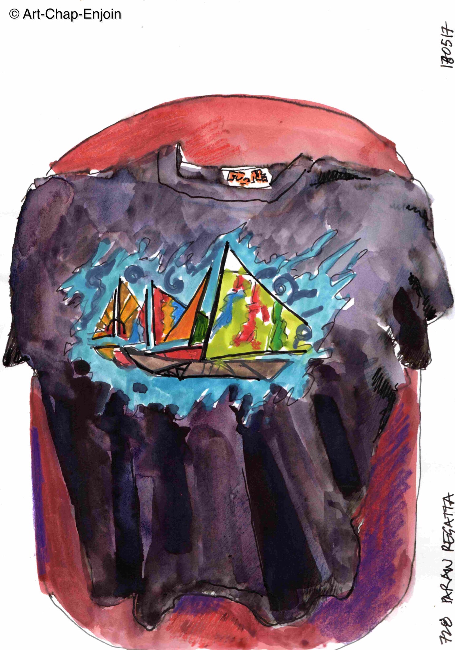 Here is my sketch for the Doodlewash May challenge prompt of “Sailboats” for Thursday 17th. Paraw Regatta is an annual festival held near where we used to live on the coast in Iloilo – the main event being a sailboat race in Iloilo Strait with colourful Visayan double outrigger sail boats….as per the design on my t-shirt!