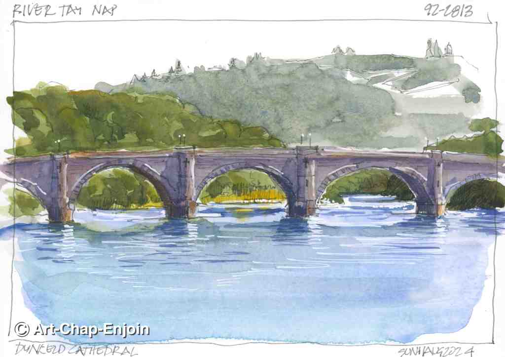 On our first day in Dunkeld (before checking in to our hotel and after our lunch) we visited Dunkeld Cathedral and then sat by the river with this glorious view of the bridge over the river Tay. This bridge was built between 1805 and 1809 by Thomas Telford – a Scottish engineer most famous for a cast iron arch bridge that crosses the River Severn in Shropshire. After checking into to our hotel we went on the Hermitage and Braan Walk, through beautiful wooded glens and fantastic countryside.