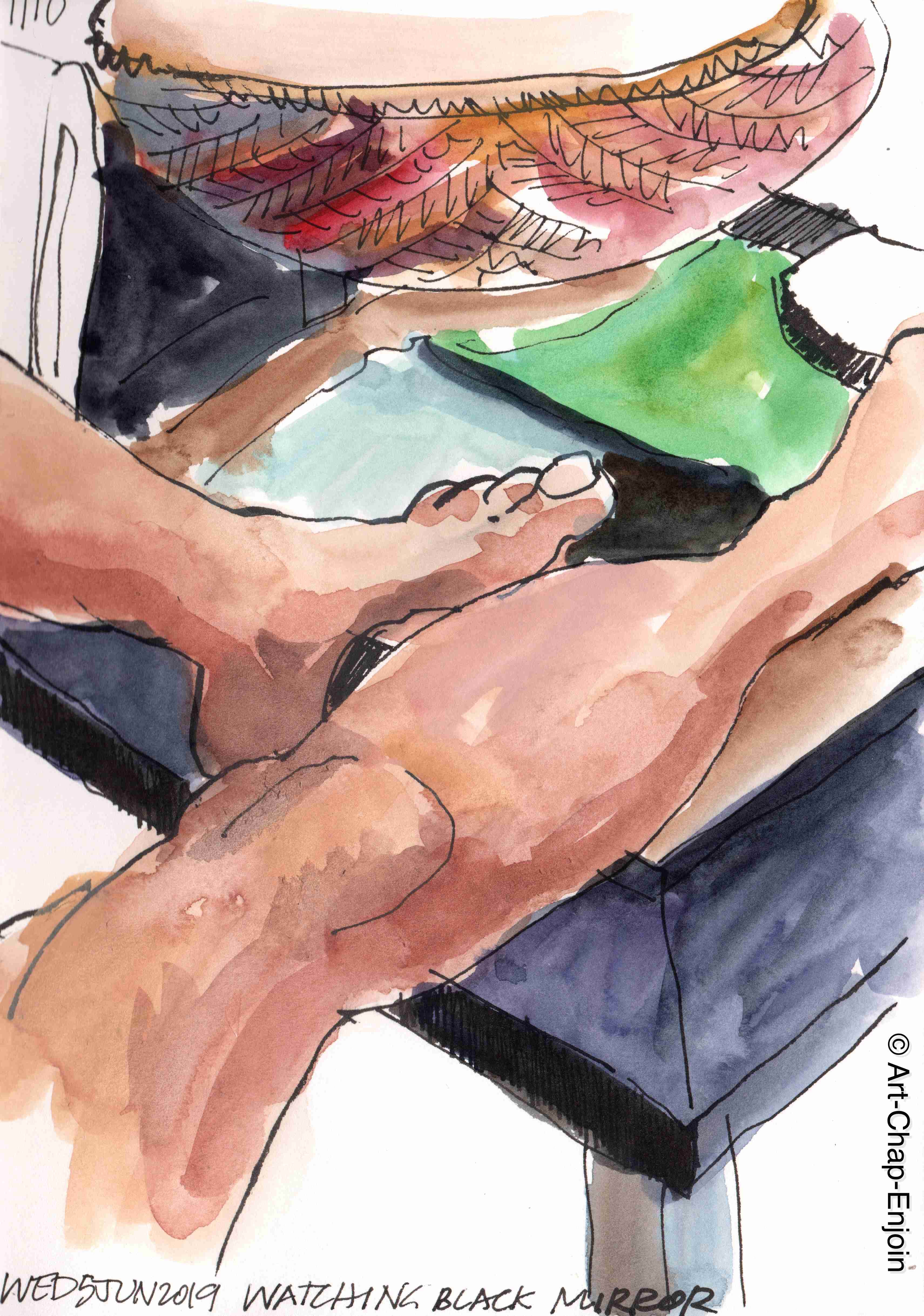 I don’t know what brought me to this idea but I thought it would be fun sketching some random scenes from a movie I was watching. I prefer to sketch from life but I really had fun doing this. Of course, part way through I realised I had set myself the task of doing 4 sketches in one evening, albeit small ones! Can you guess the movie?…highly underrated I think.