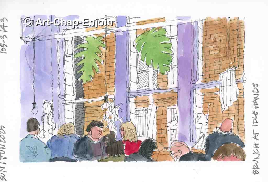 Despite being tired (after seeing off our daughter and shopping in the Arndale for a wok), we stopped for a beer at the The New Oxford pub and I drew this. The pub has a huge range of beer – I had the house ale. This horse sculpture by Emma Rodgers (@rodgers_art.emma) recognises Salford as home to Englands first public library and it is covered with messages and sayings from famous Salfordians, poets and musicians. The visit Salford website (https://www.visitsalford.info/) also notes that “a dog cocking its leg against the lamp post is a tribute to Salford artist Harold Riley and his famous sketches of dogs”…you can just about see the dog in my sketch.