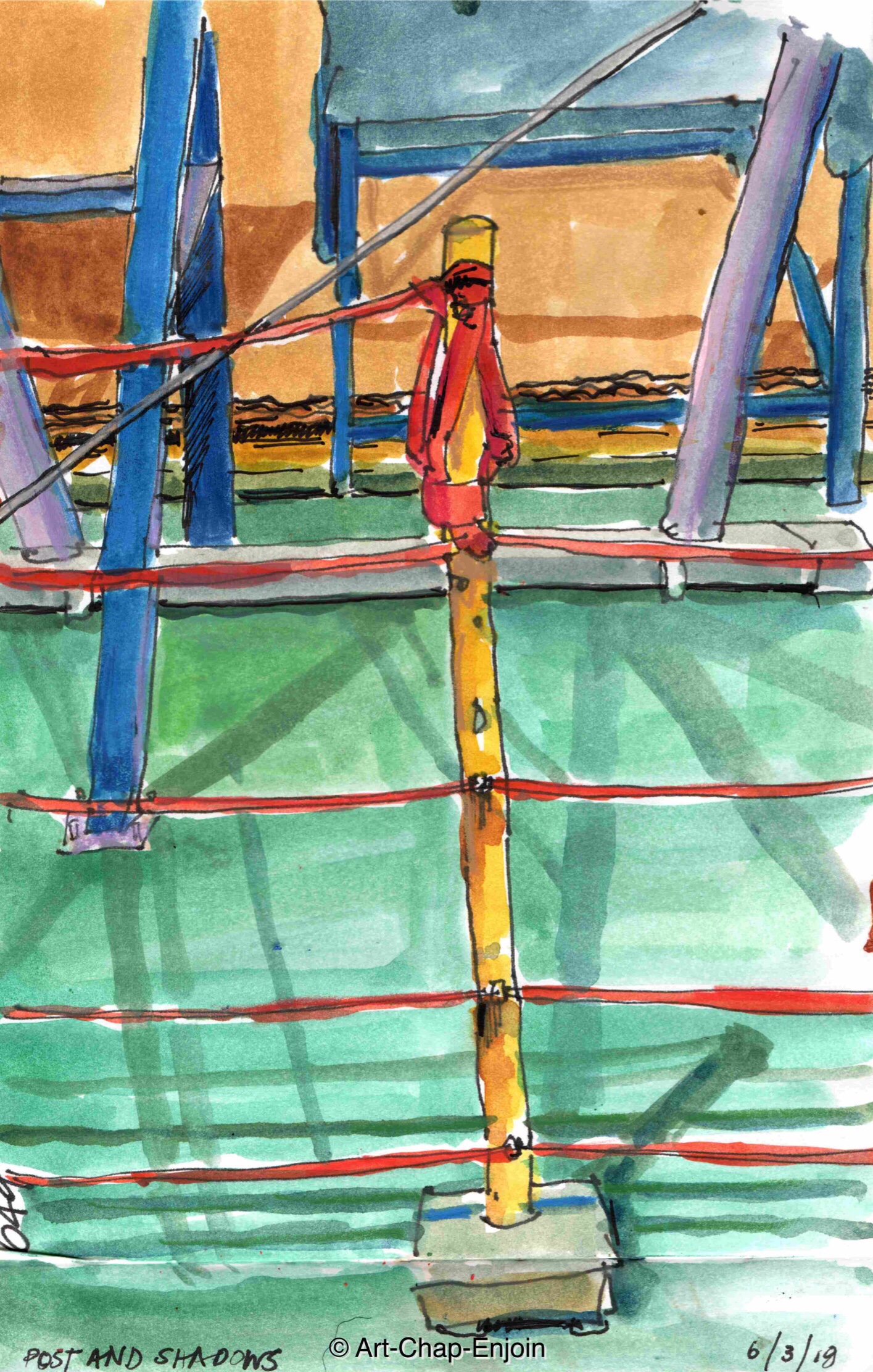 This is an lunchtime doodle done in watercolour and ink while watching a movie (Girl on a train)…I’ve drawn this view several times before. Somehow I think the others turned out better. The only bit I like is the lunch box with a spoon in it.